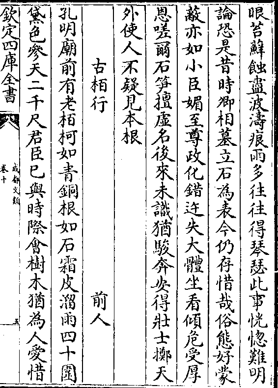 孔明庙前有老柏柯如青铜根如石霜皮溜雨四十围