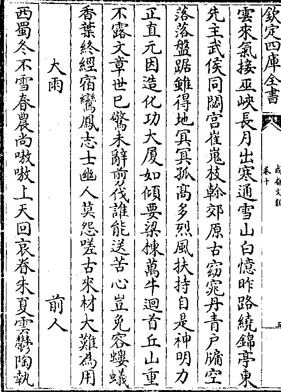 西蜀冬不雪春农尚嗷嗷上天回哀眷朱夏云郁陶执