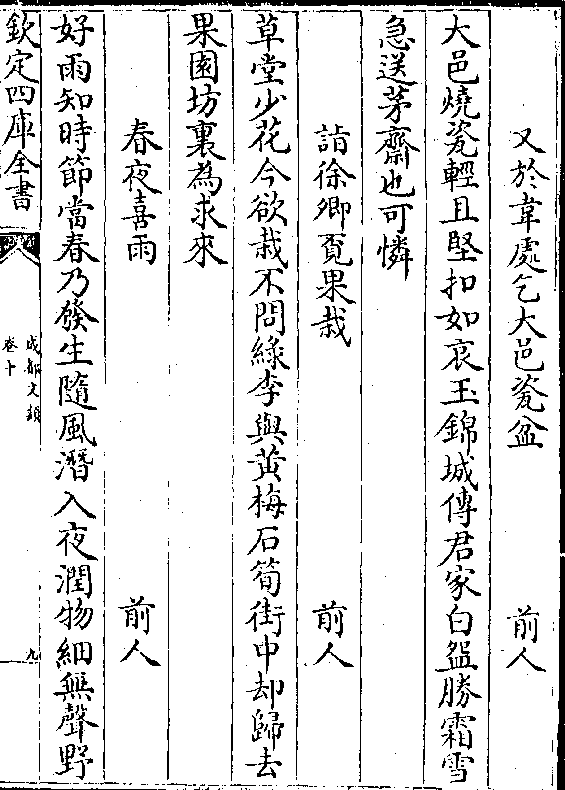 题咏(书画 器物 雨雪风月 草木 虫鱼)