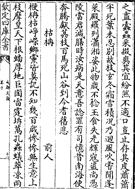 树思冯异甘棠忆召公叶彫湘燕雨枝拆海鹏风玉垒