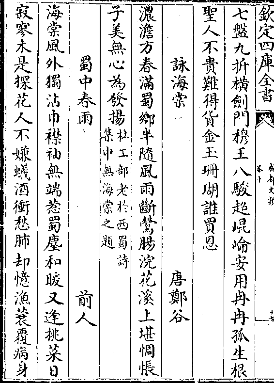 子美无心为发扬(杜工部老于西蜀诗集中无海棠之题)