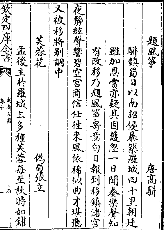有改移乃题风筝寄意旬日报到移镇渚宫