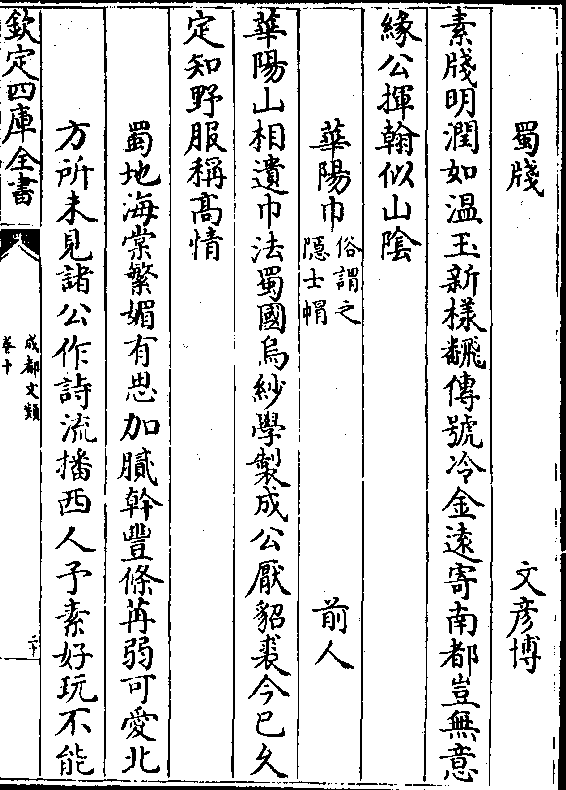 华阳山相遗巾法蜀国乌纱学制成公厌貂裘今已久