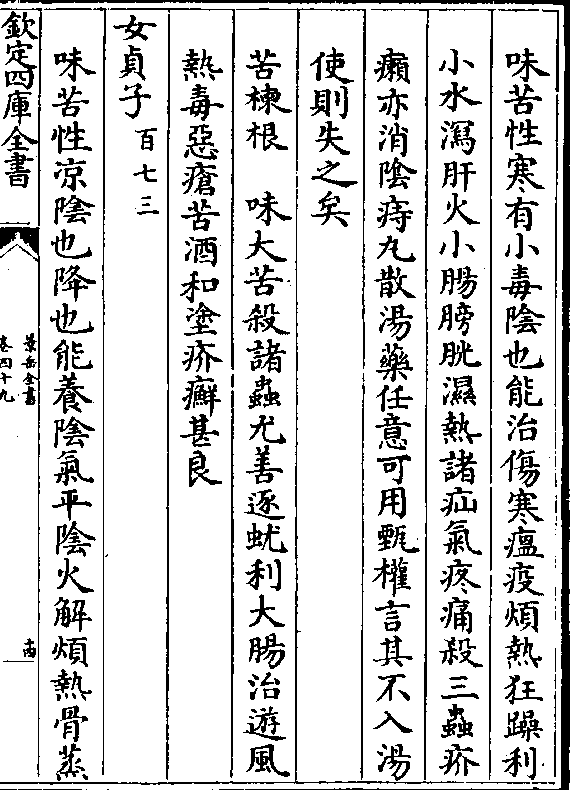 止解蛊毒虫毒妇人崩淋带浊子肠不收小儿夜啼