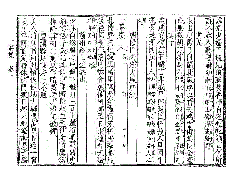 东出朝阳日向阑。北风尘起暗天端。当街为问金台路。无数胡儿拥马看。(黄金台。一在易水上。一在朝阳门外。或号聚兵台。而终不能寻。)