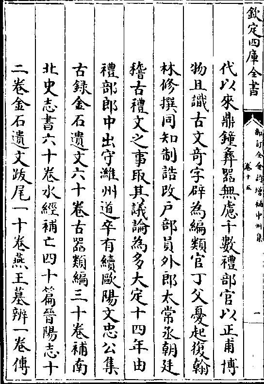 代以来鼎钟彝器无虑千数礼部官以正甫博物且识古文奇字辟为编类官丁父忧起复翰