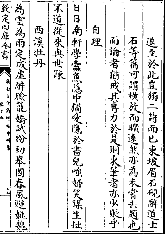 遂至于此岂独二诗而已东坡眉石砚醉道士石等篇可谓横放而旷远然亦为未尝去题也